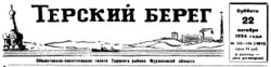 «ТЕРСКИЙ БЕРЕГ», районная общественно-политическая газета. Выходит в с. Умба с 01.11.1932 (до 21.07.1939 — «Беломорская волна», до 01.01.1953 — «Большевистская трибуна», до 26.02.1991 — «Терский коммунист»). Редакторы: М. П. Рыжков, А. С. Белозерцев, П. Г. Востриков, В. Н. Мошников, П. А. Логинов, В. В. Егоренков, В. С. Георги, В. И. Ниткин.