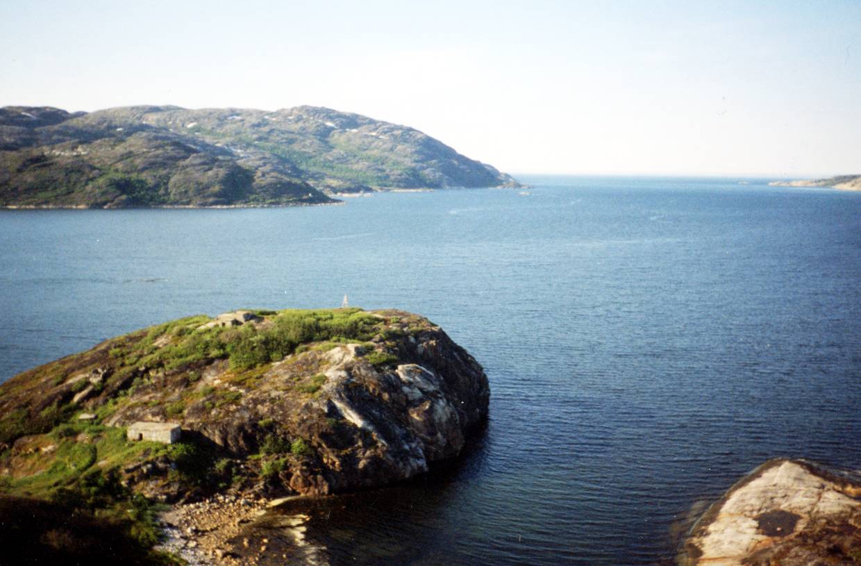 Мыс Девкин у входа в залив Лиинахамари (слева на втором плане). На переднем плане слева - мыс Крестовый ~ .Фото А. Обойщикова. Архив В.А. Мацак
